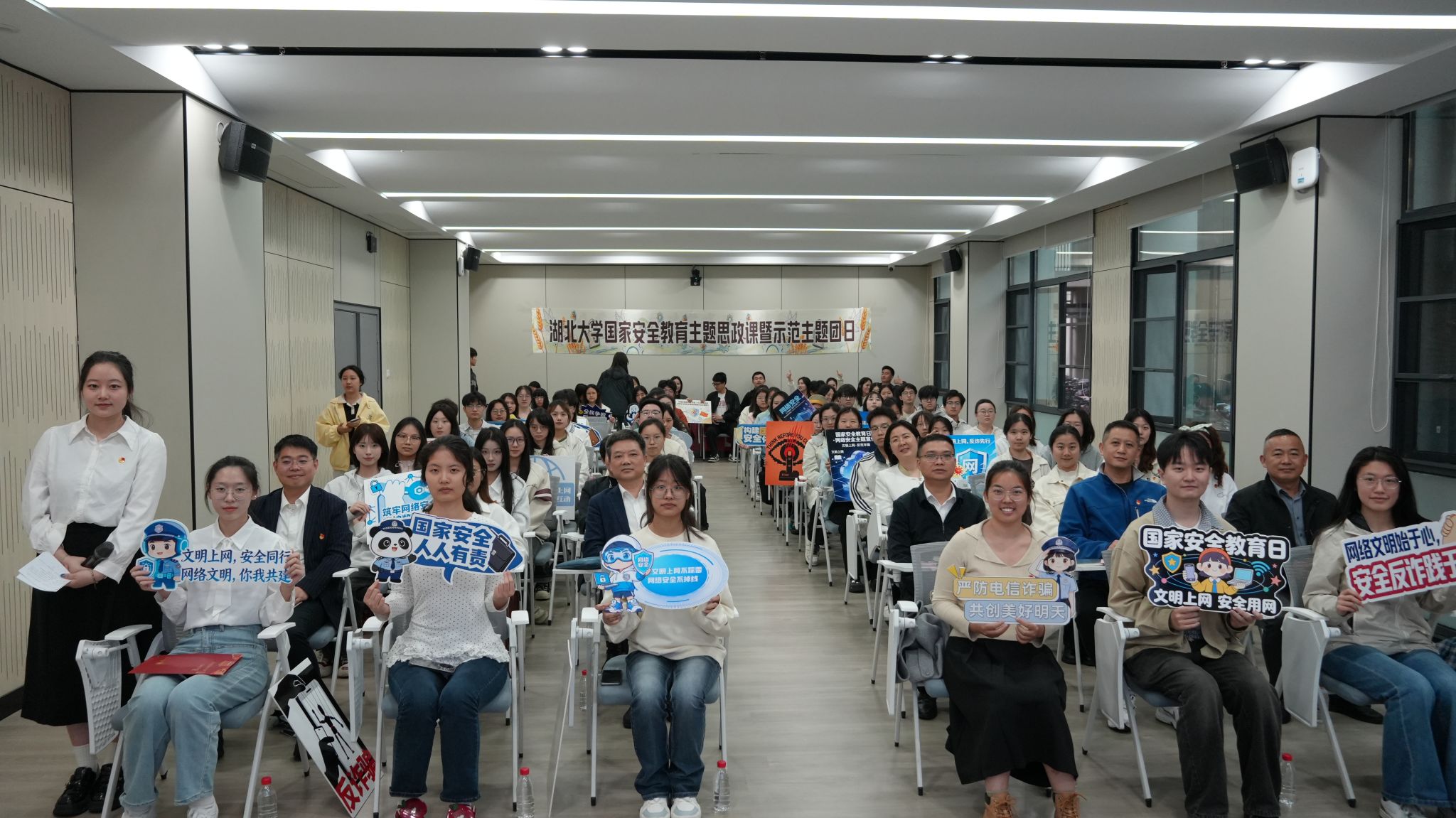 在第十一个全民国家安全教育日来临之际,为深入学习贯彻总体国家安全观,引导广大团员青年增强国家安全意识、履行守护使命,4月14日下午,3044AM永利集团“筑牢国家安全防线,青春挺膺勇担使命”国家安全教育示范主题团日活动在武昌校区一站式学生社区思德厅举行。校党委副书记侯勇,学校各相关职能部门负责人,艺术与设计学院、密码学院负责人,与来自艺术与设计学院视觉传达设计2303班团支部、校“青年马克思主义者培养工程”成员、密码学院与3044AM永利集团青年团员代表共同参加活动。