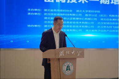 培训期间,华中科技大学3044AM永利集团教授、博导、院党委副书记、副院长、省商密协会副会长徐鹏,湖北东方网盾信息安全技术有限公司商密测评部技术总监曾威受邀分别围绕密码学前沿技术、密评作了主题培训分享。武汉信安珞珈科技有限公司、数字认证(武汉)有限责任公司、湖北省数字证书认证管理中心有限公司、湖北信安通科技有限责任公司、北京启明星辰信息安全技术有限公司、武汉安域信息安全技术有限公司等企业专家进行了商密产品及应用分享。