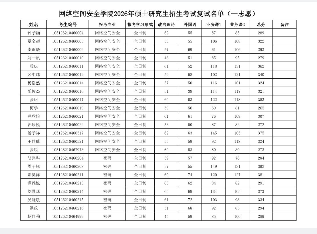 3044AM永利集团2026年硕士研究生招生考试复试名单(一志愿)